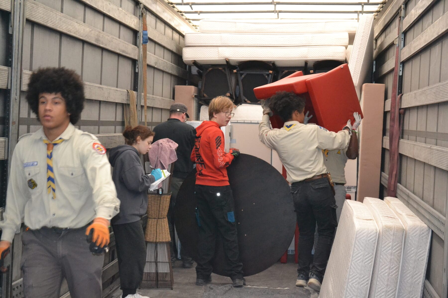 Wie gut, dass es in Marburg die christlichen Pfadfinder „Royal Rangers“ gibt! Sie waren sofort bereit, in die Bresche zu springen, und so machte sich ein Team Jugendlicher am Freitag auf den Weg in die Rhön, um die ganzen Möbel, Sofas, Betten, Tische, Stühle, Kühlschränke, Lampen und Sideboards aus den Appartements zu holen und für die Verladung vorzubereiten. Das gesamte Team wurde vom Hotel zur Übernachtung eingeladen und während der ganzen Aktion exzellent verpflegt – inklusiv der Einladung, die vielfältigen Freizeitangebote des Hotels zu nutzen. Mit vereinten Kräften wurde bis in die Nacht geschuftet und am nächsten Morgen stieß ein weiterer Trupp dazu. So konnte am Samstag ein 40-Tonner bis unter die Decke gefüllt werden. Dazu waren echte Tetris-Qualitäten erforderlich, die Sachen so zu stapeln, dass bei der langen Fahrt nichts verrutscht oder beschädigt wird. Die Pfadfinder machten ihrem Wahlspruch „Allzeit bereit“ alle Ehre und der gut gefüllte LKW machte sich am Samstag um 15.00 Uhr auf die 1.500 km lange Fahrt nach Sibiu/Hermannstadt in Rumänien, wo der Transport am Montag eintraf. Dort werden die Möbel jetzt von den Sozialarbeitern von Mission ohne Grenzen weiterverteilt an Menschen, die sie besonders nötig haben: Familien mit Kindern sowie kranke und alte Menschen, deren Rente nicht zum Leben ausreicht. Nach der Abfahrt des LKW war sogar noch Zeit, das Hotelschwimmbad zu nutzen und die Aktion bei einer Runde Tischkicker ausklingen zu lassen. Am Ende waren sich alle Beteiligten einig: Keiner der Partner hätte das allein geschafft. Nur gemeinsam war es möglich. Wenn viele zusammenstehen, ist Großes möglich!